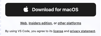 まずは Visual Studio Code の公式サイトを開いて、自分のOS向けのボタンを押します。